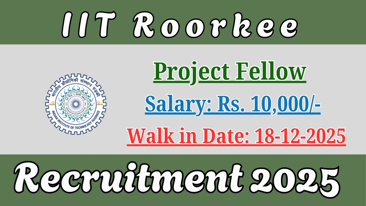 Latest Update: IIT Roorkee Project Fellow Recruitment 2025 – Walk-in Interview on 18th December! Attend Now for the Vacancy