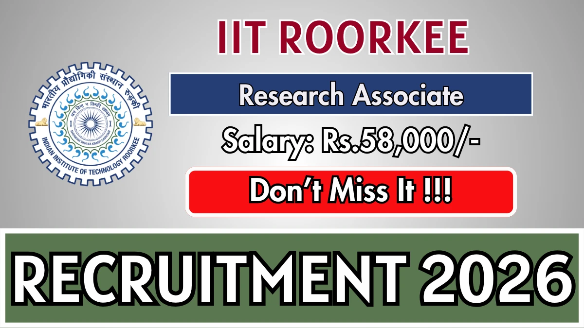Indian Institute of Technology, Roorkee (IIT Roorkee) (IIT Roorkee) Research Associate Notification 2026 has been released on the official website of IIT Roorkee. A total of 1 vacancy has been announced through the IIT Roorkee Research Associate Recruitment 2026.
