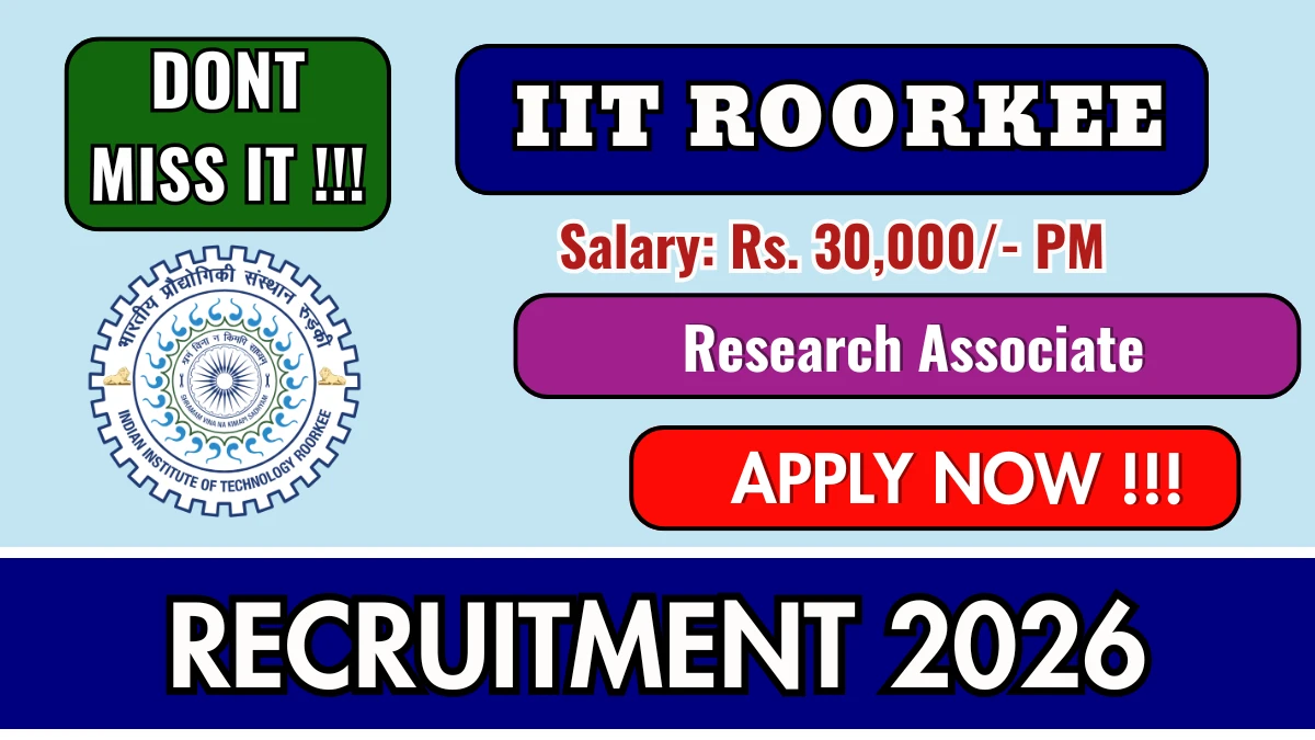 Indian Institute of Technology Roorkee (IIT Roorkee) has released an official notification for the recruitment of 01 Research Associate Posts. Interested and eligible candidates can apply Online through the official IIT Roorkee website. The last date to submit the application form is 17-02-2026. In this article, you’ll find the IIT Roorkee Research Associate Posts recruitment details, including eligibility criteria, age limit, salary structure, selection process, application steps, and direct links to the official notification and Online application form.