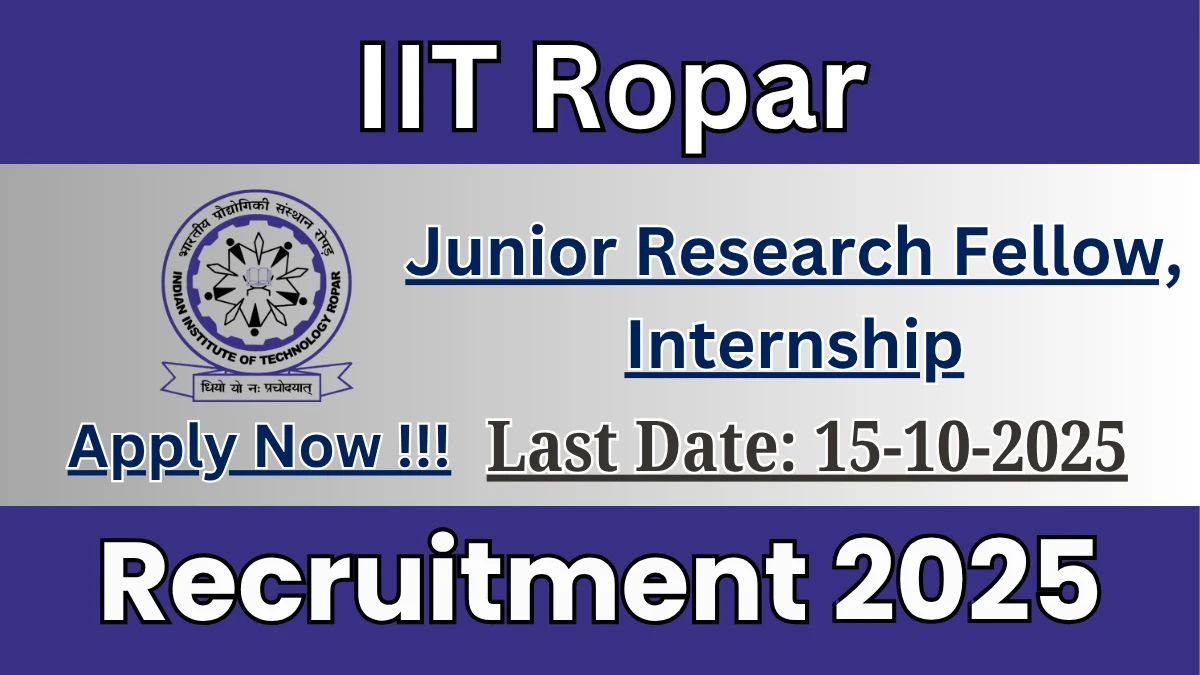 Indian Institute of Technology of Ropar (IIT Ropar) has released an official notification for the recruitment of 16 Junior Research Fellow, Internship Posts. Interested and eligible candidates can apply Offline through the official IIT Ropar website. The last date to submit the application form is 15-10-2025. In this article, you’ll find the IIT Ropar Junior Research Fellow, Internship Posts recruitment details, including eligibility criteria, age limit, salary structure, selection process, application steps, and direct links to the official notification and Offline application form.