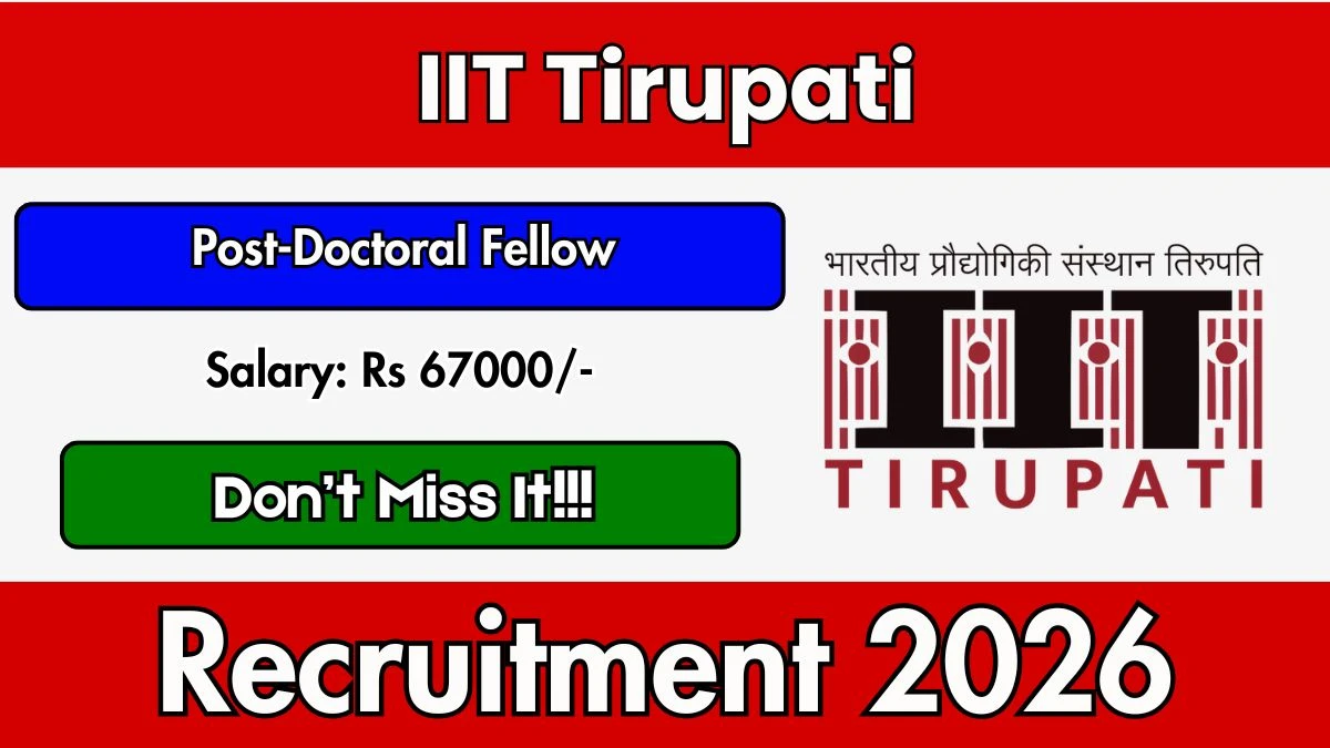 Candidates who meet the eligibility criteria can apply online for the IIT Tirupati Post-Doctoral Fellow Recruitment 2026.
