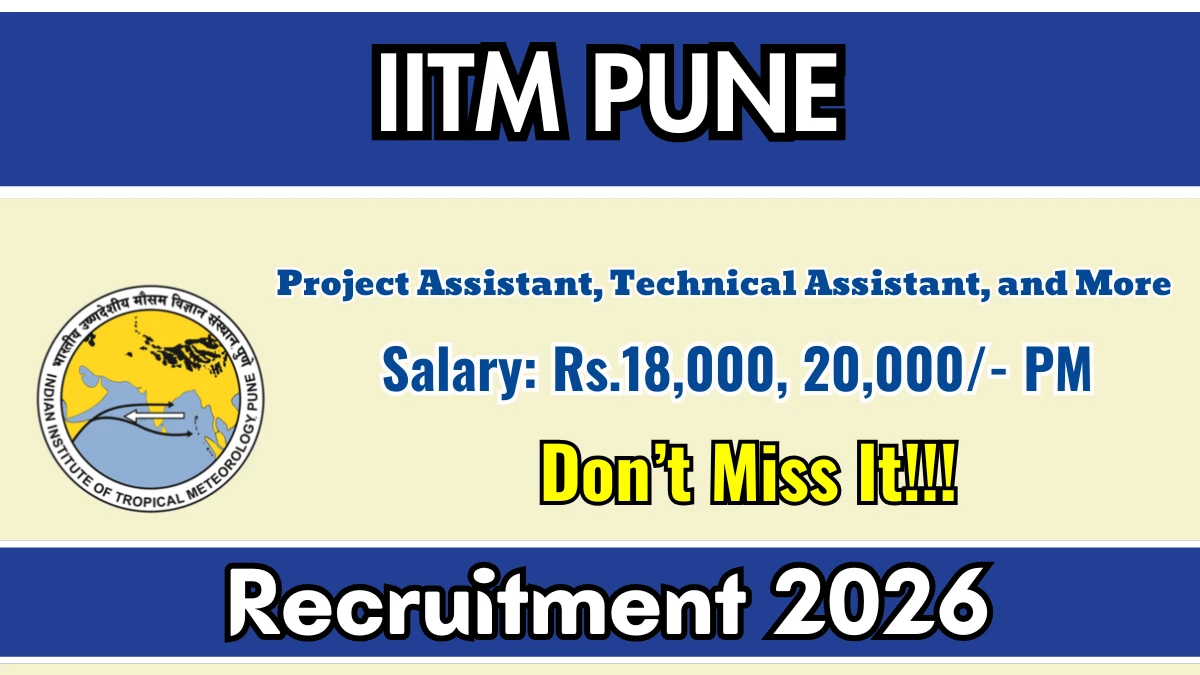 IITM Pune has announced a total of 9 vacancies for the posts of Project Assistant, Technical Assistant, and Scientific Administrative Assistant.