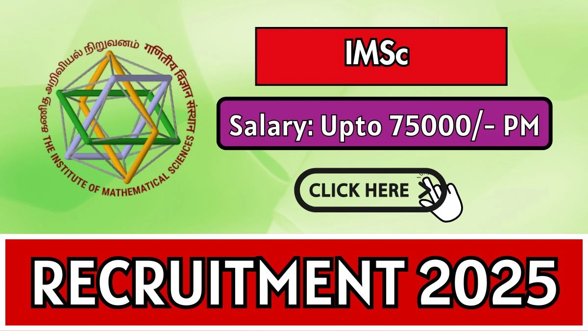 The Institute of Mathematical Sciences (IMSc) Recruitment 2025 for 07 posts of Project Assistant, Research Associate and Other. Candidates with B.Tech/B.E, M.Sc, M.Phil/Ph.D Can Apply Online. The online application opens on 18-12-2025, and closes on 04-01-2026. The candidate shall apply online through IMSc website, imsc.res.in.
