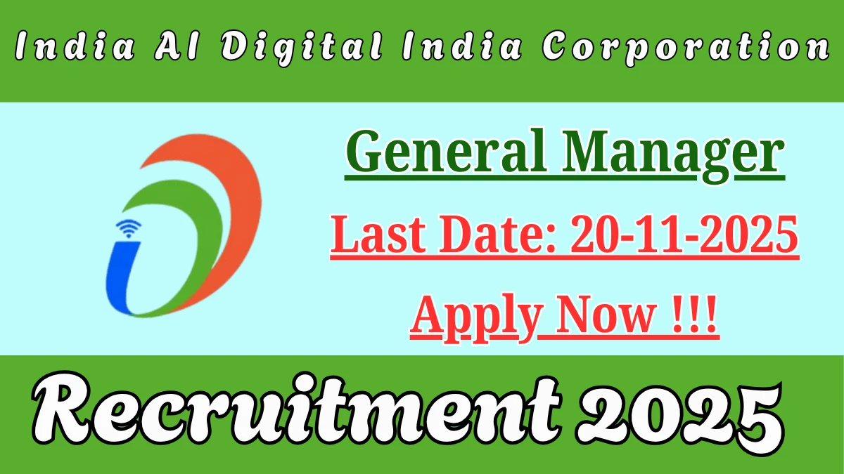 India AI Digital India Corporation has released an official notification for the recruitment of 01 General Manager Posts. Interested and eligible candidates can apply Online through the official India AI Digital India Corporation website. The last date to submit the application form is 20-11-2025. In this article, you’ll find the India AI Digital India Corporation General Manager Posts recruitment details, including eligibility criteria, age limit, salary structure, selection process, application steps, and direct links to the official notification and Online application form.