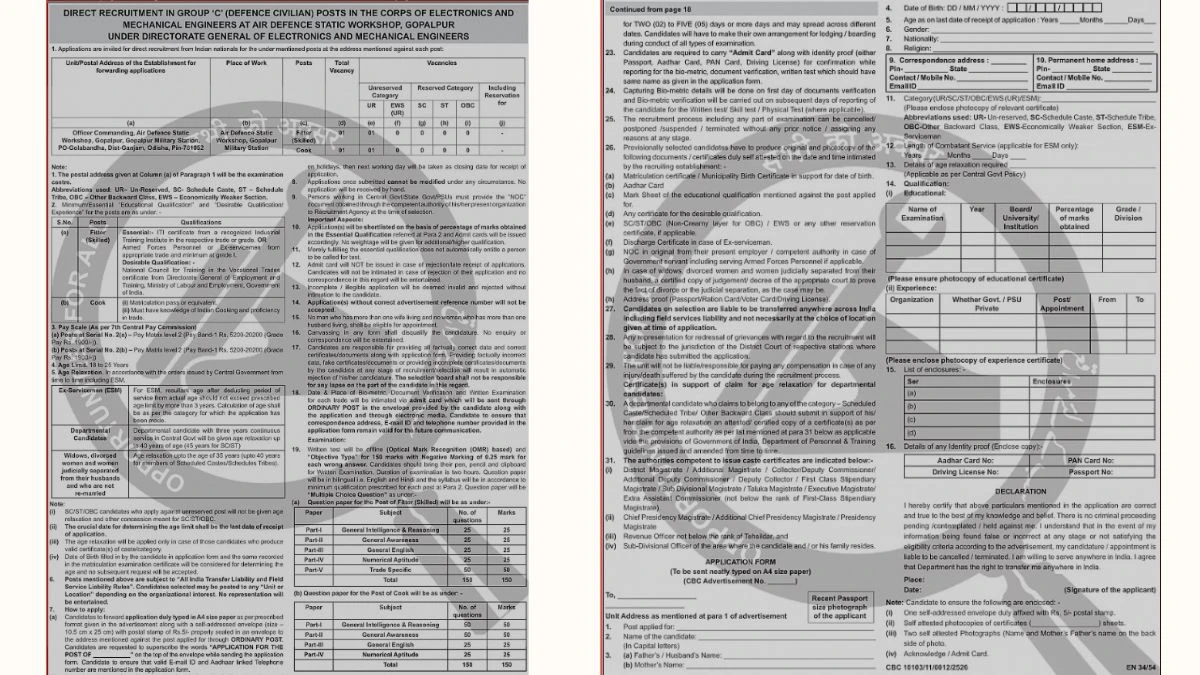 Indian Army Directorate General of Electronics and Mechanical Engineers (Indian Army DG EME) has released an official notification for the recruitment of 2 Fitter, Cook Posts. Interested and eligible candidates can apply Offline through the official Indian Army DG EME website. The last date to submit the application form is 13-12-2025. In this article, you’ll find the Indian Army DG EME Fitter, Cook Posts recruitment details, including eligibility criteria, age limit, salary structure, selection process, application steps, and direct links to the official notification and Offline application form.