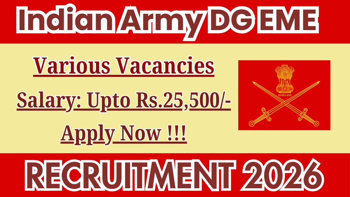 The Indian Army Directorate General of Electronics and Mechanical Engineers (Indian Army DG EME) Recruitment 2025 for posts of 03 Lower Division Clerk , Cook and More. Candidates with 12TH, 10TH Can Apply Offline. The Offline application opens on 20-12-2025, and closes on 09-01-2026. The candidate shall apply Offline through Indian Army DG EME website, indianarmy.nic.in.