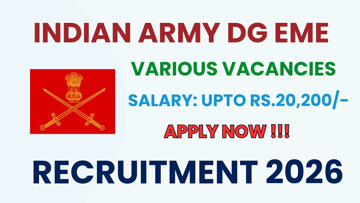 Indian Army Directorate General of Electronics and Mechanical Engineers (Indian Army DG EME) has released an official notification for the recruitment of 06 Barber, Tradesman Mate And More Posts. Interested and eligible candidates can apply Offline through the official Indian Army DG EME website. The last date to submit the application form is 06-02-2026. In this article, you’ll find the Indian Army DG EME Barber, Tradesman Mate And More Posts recruitment details, including eligibility criteria, age limit, salary structure, selection process, application steps, and direct links to the official notification and Offline application form.