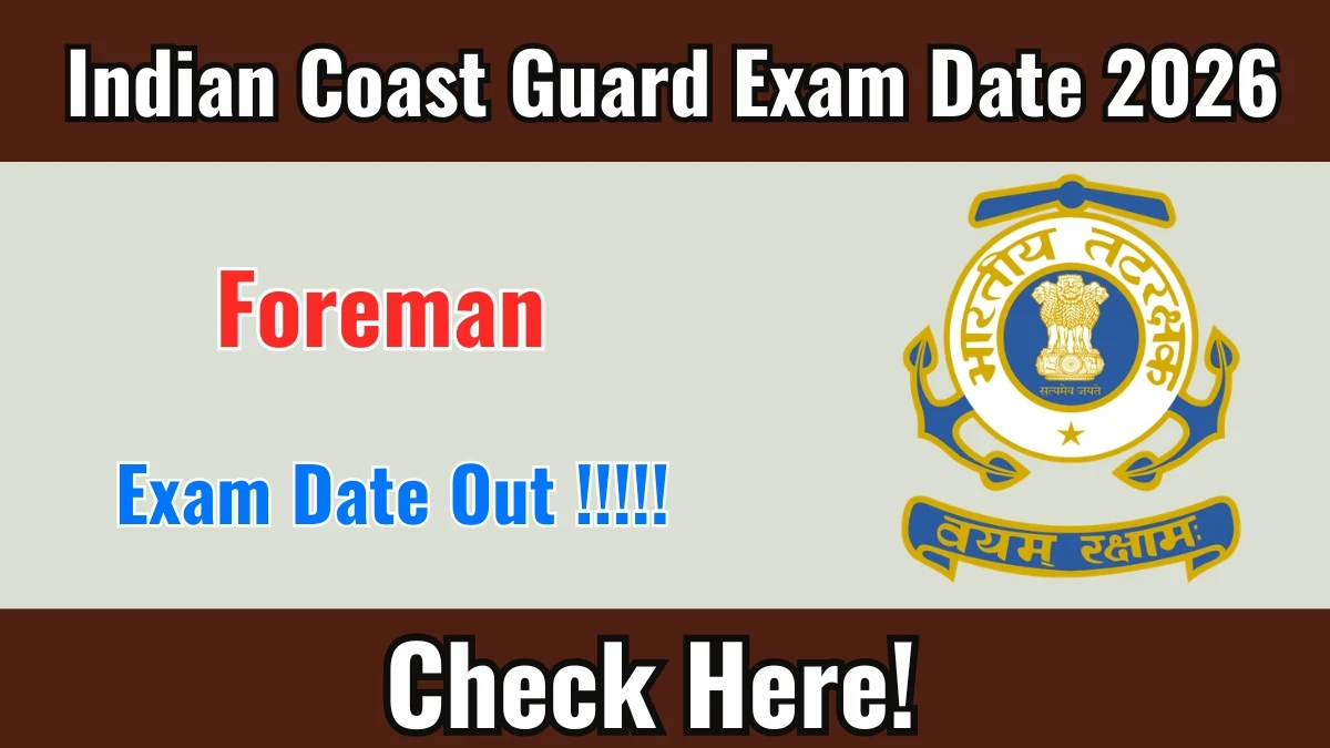 Indian Coast Guard Exam Date 2026: The Indian Coast Guard has officially released the exam date for the Foreman recruitment. Candidates who have applied for the Foreman posts can check the complete exam schedule below. The examination is scheduled to be held on 26 February 2026. All eligible candidates are advised to download their admit cards and prepare accordingly.
