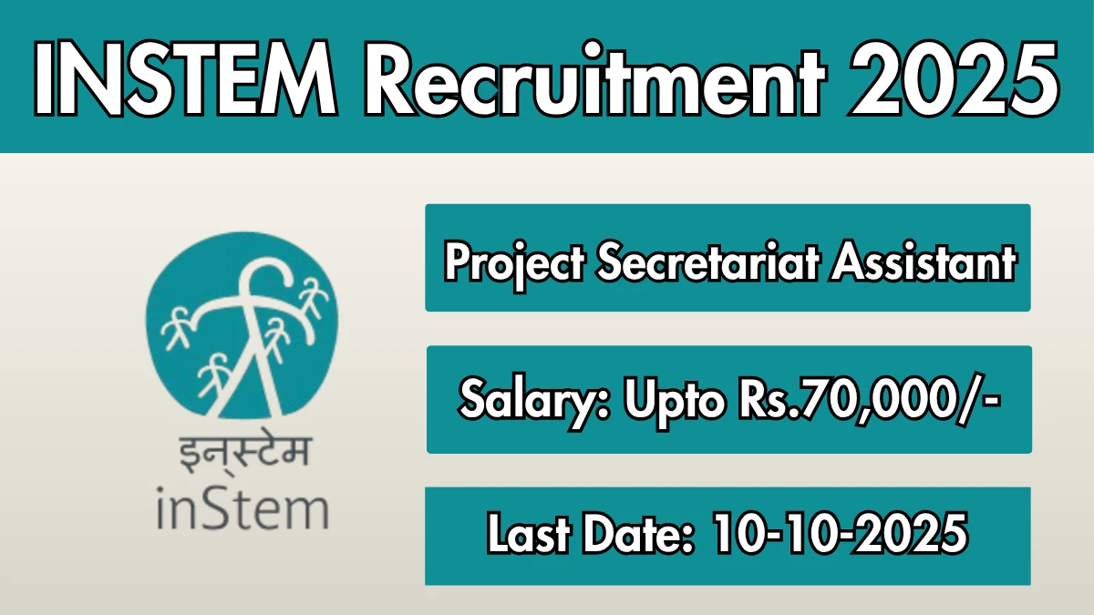 Institute for Stem Cell Science and Regenerative Medicine (INSTEM) has released an official notification for the recruitment of 01 Project Secretariat Assistant Posts. Interested and eligible candidates can apply Online through the official INSTEM website. The last date to submit the application form is 10-10-2025. In this article, you’ll find the INSTEM Project Secretariat Assistant Posts recruitment details, including eligibility criteria, age limit, salary structure, selection process, application steps, and direct links to the official notification and Online application form.