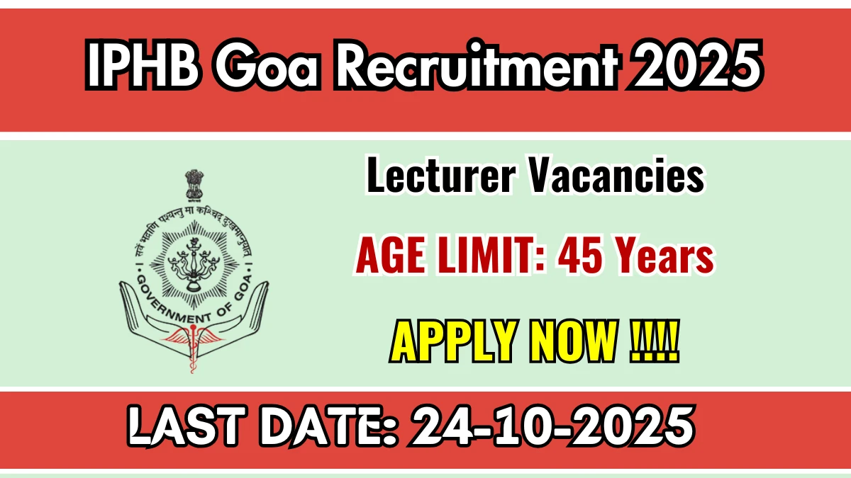 Institute of Psychiatry and Human Behaviour (IPHB Goa) has released an official notification for the recruitment of 02 Lecturer Posts. Interested and eligible candidates can apply Online through the official IPHB Goa website. The last date to submit the application form is 24-10-2025. In this article, you’ll find the IPHB Goa Lecturer Posts recruitment details, including eligibility criteria, age limit, salary structure, selection process, application steps, and direct links to the official notification and Online application form.