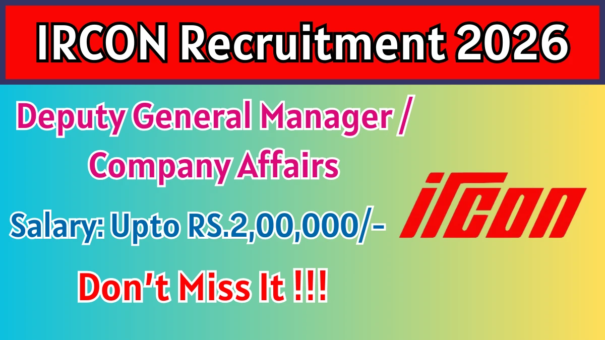 Indian Railway Construction International (IRCON) has released an official notification for the recruitment of 01 Deputy General Manager / Company Affairs Posts. Interested and eligible candidates can apply Offline through the official IRCON website. The last date to submit the application form is 13-02-2026. In this article, you’ll find the IRCON Deputy General Manager / Company Affairs Posts recruitment details, including eligibility criteria, age limit, salary structure, selection process, application steps, and direct links to the official notification and Offline application form.