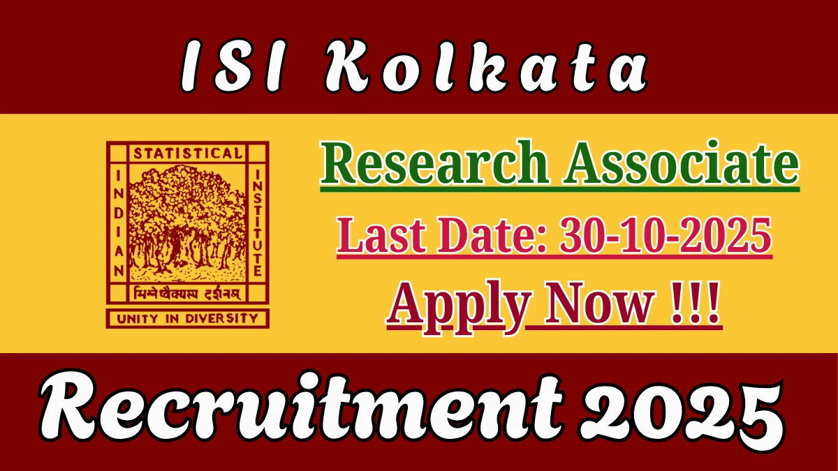 Indian Statistical Institute Kolkata (ISI Kolkata) has released an official notification for the recruitment of 01 Research Associate Posts. Interested and eligible candidates can apply Offline through the official ISI Kolkata website. The last date to submit the application form is 30-10-2025. In this article, you’ll find the ISI Kolkata Research Associate Posts recruitment details, including eligibility criteria, age limit, salary structure, selection process, application steps, and direct links to the official notification and Offline application form.