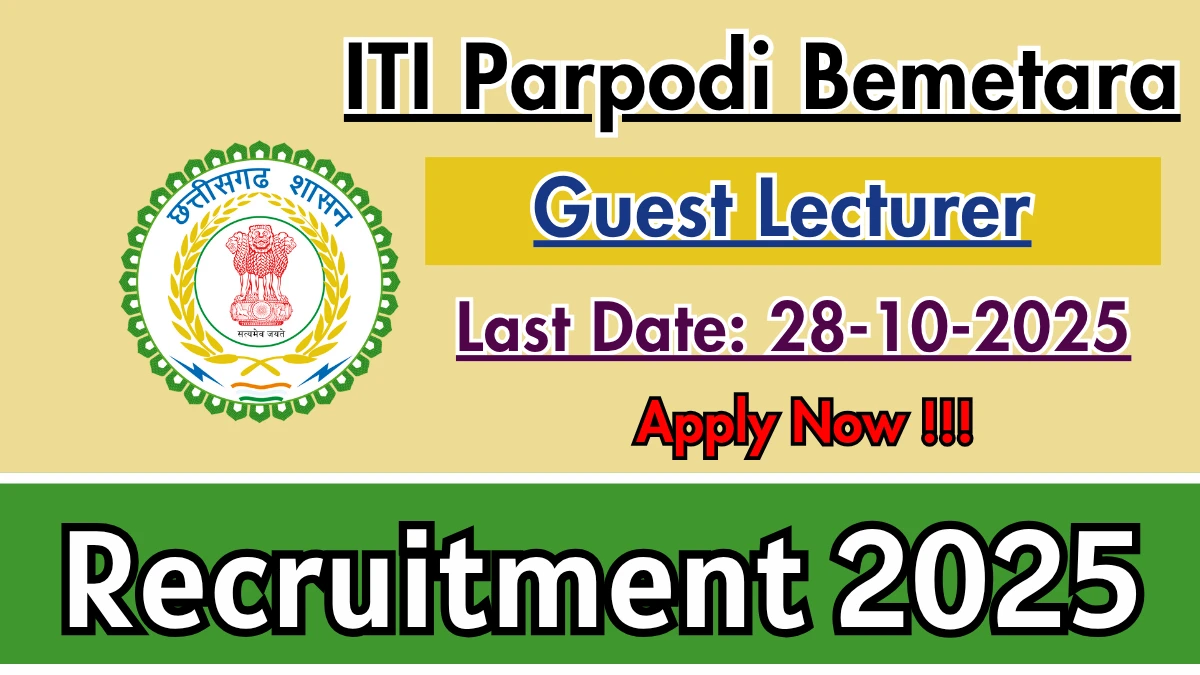 Industrial Training Institute Parpodi Bemetara (ITI Parpodi Bemetara) has released an official notification for the recruitment of 02 Guest Lecturer Posts. Interested and eligible candidates can apply Offline through the official ITI Parpodi Bemetara website. The last date to submit the application form is 28-10-2025. In this article, you’ll find the ITI Parpodi Bemetara Guest Lecturer Posts recruitment details, including eligibility criteria, age limit, salary structure, selection process, application steps, and direct links to the official notification and Offline application form.