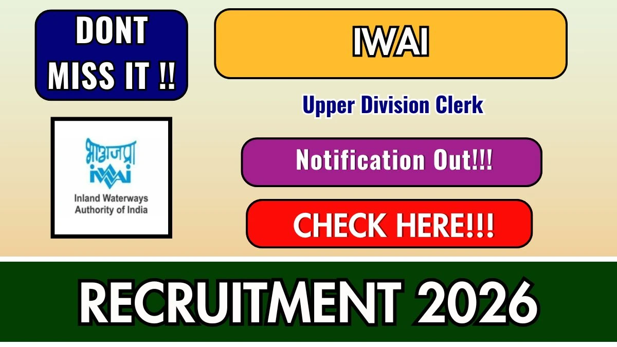 Inland Waterways Authority of India (IWAI) Upper Division Clerk (UDC) Notification 2026 has been released on the official website www.iwai.nic.in