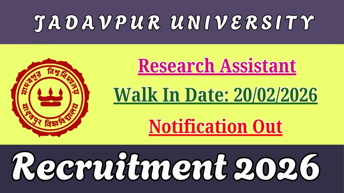 Jadavpur University Recruitment 2026 of Research Assistant. Candidates with M.A Can attend the walkin. The Walk-in on 20-02-2026. For detailed information please visit Jadavpur University official website, jadavpuruniversity.in.