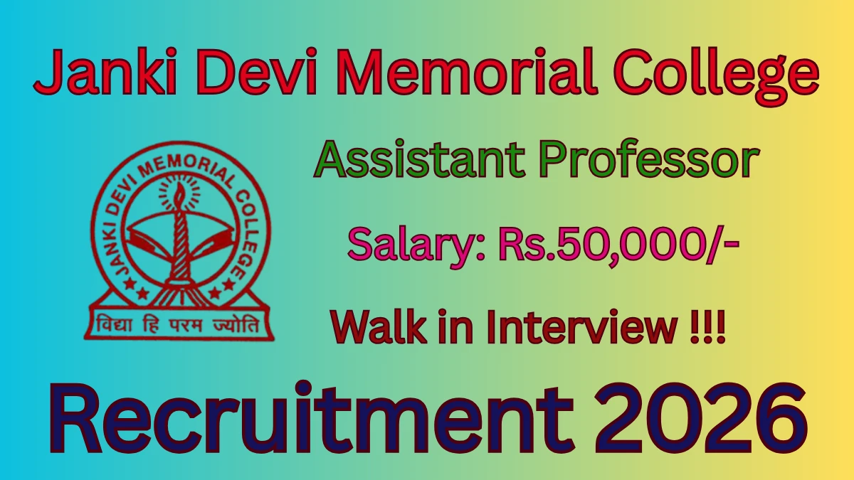 Janki Devi Memorial College Recruitment 2026 for 13 posts of Assistant Professor. Candidates Can attend the walkin. The Walk-in starts from 14-01-2026, and ends on 22-01-2026. For detailed information please visit Janki Devi Memorial College official website, du.ac.in.