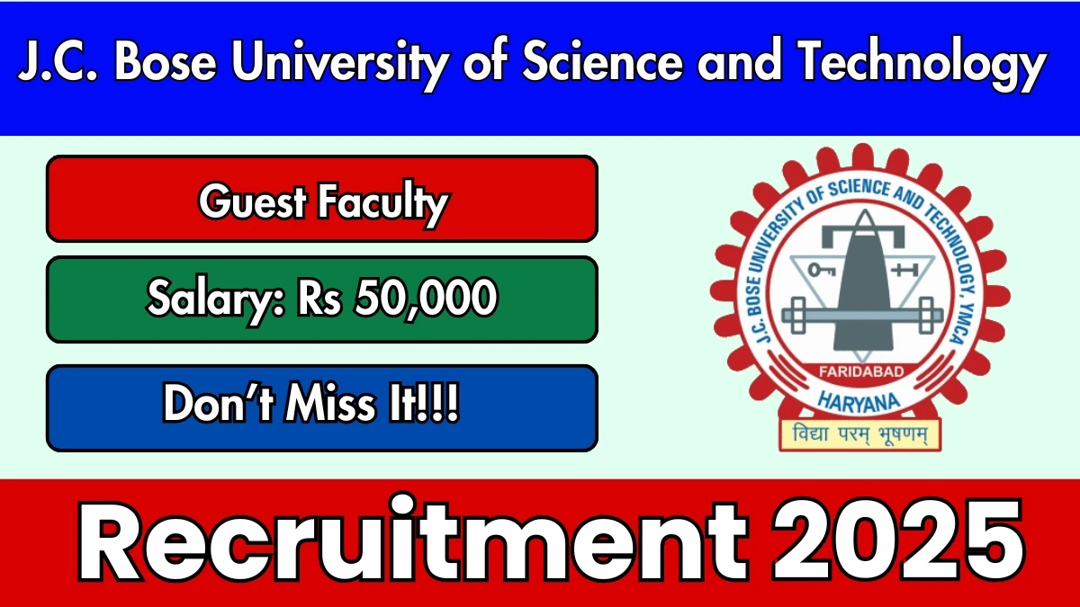 J.C. Bose University of Science and Technology, YMCA, Faridabad Guest Faculty Vacancy 2025 |