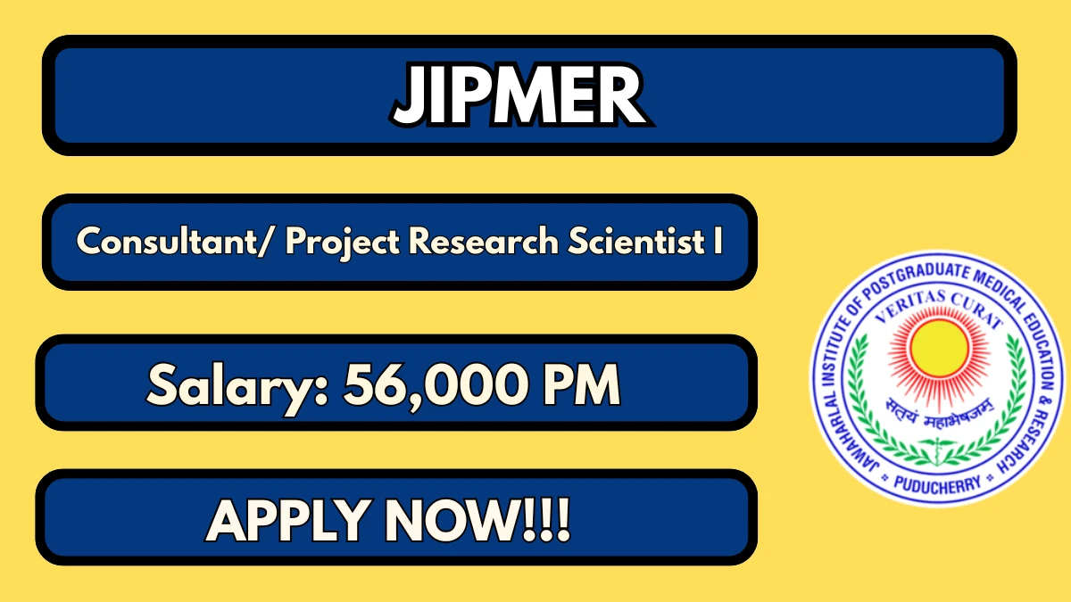 JIPMER Consultant/ Project Research Scientist I 2026 – Important Details