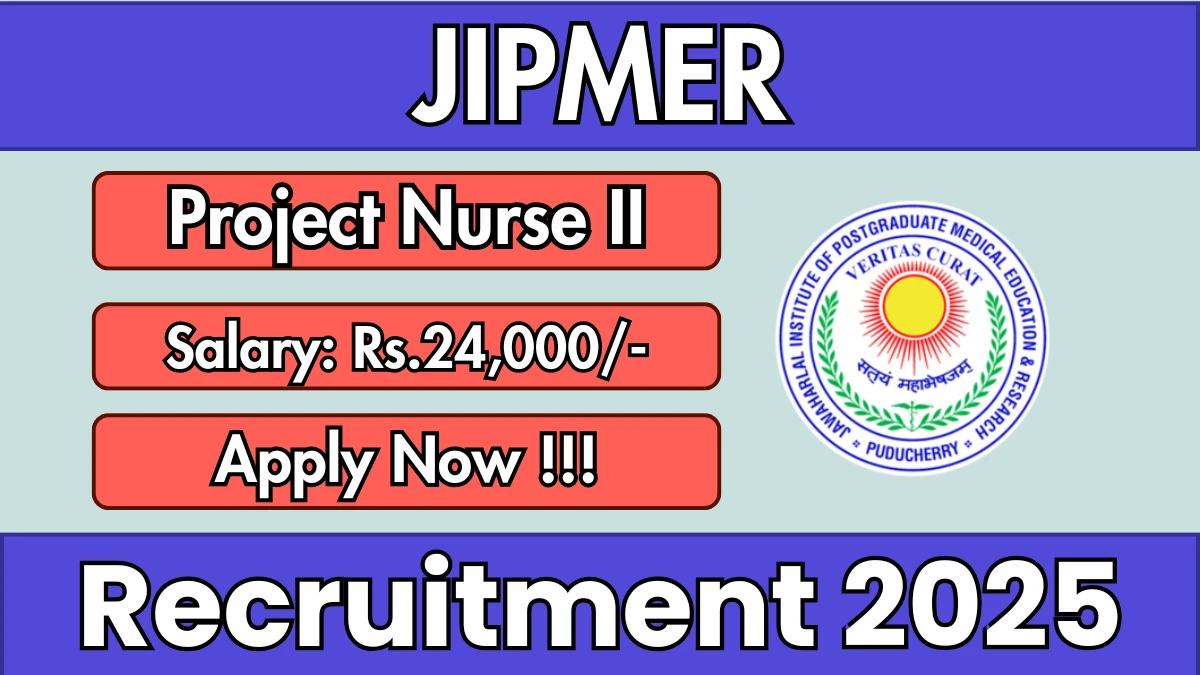 Jawaharlal Institute of Postgraduate Medical Education and Research (JIPMER) has released an official notification for the recruitment of Project Nurse II Posts. Interested and eligible candidates can apply Offline through the official JIPMER website. The last date to submit the application form is 07-12-2025. In this article, you’ll find the JIPMER Project Nurse II Posts recruitment details, including eligibility criteria, age limit, salary structure, selection process, application steps, and direct links to the official notification and Offline application form.
