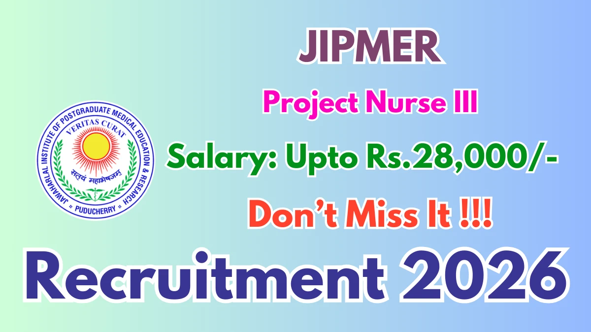 Jawaharlal Institute of Postgraduate Medical Education and Research (JIPMER) has released an official notification for the recruitment of 01 Project Nurse III Posts. Interested and eligible candidates can apply Offline through the official JIPMER website. The last date to submit the application form is 01-03-2026. In this article, you’ll find the JIPMER Project Nurse III Posts recruitment details, including eligibility criteria, age limit, salary structure, selection process, application steps, and direct links to the official notification and Offline application form.