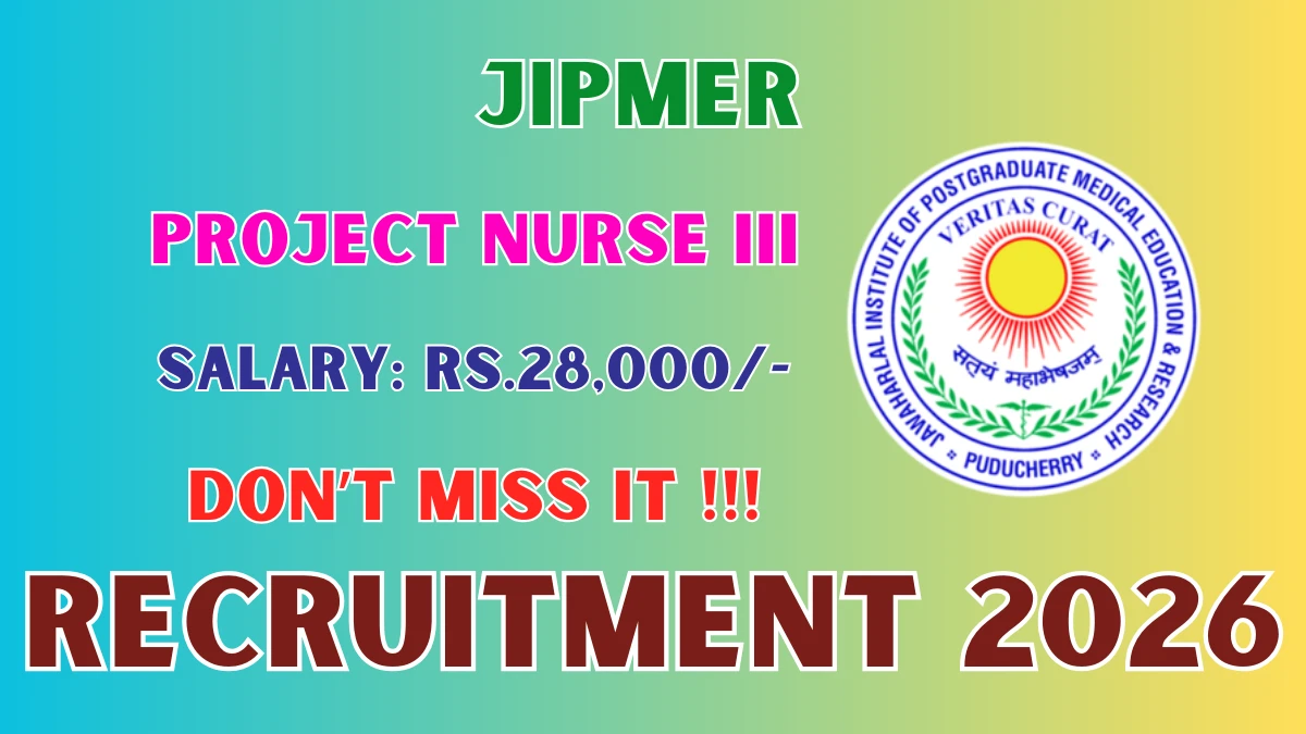 Jawaharlal Institute of Postgraduate Medical Education and Research (JIPMER) has released an official notification for the recruitment of 1 Project Nurse - III (Staff Nurse) Posts. Interested and eligible candidates can apply by sending their application via Email. The last date to send the application email is 11-03-2026.