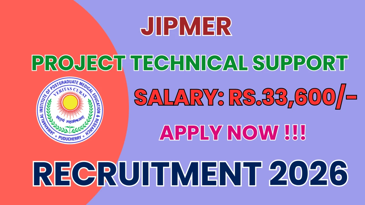 Jawaharlal Institute of Postgraduate Medical Education and Research (JIPMER) has released an official notification for the recruitment of 01 Project Technical Support III Posts. Interested and eligible candidates can apply Offline through the official JIPMER website. The last date to submit the application form is 27-01-2026. In this article, you’ll find the JIPMER Project Technical Support III Posts recruitment details, including eligibility criteria, age limit, salary structure, selection process, application steps, and direct links to the official notification and Offline application form.