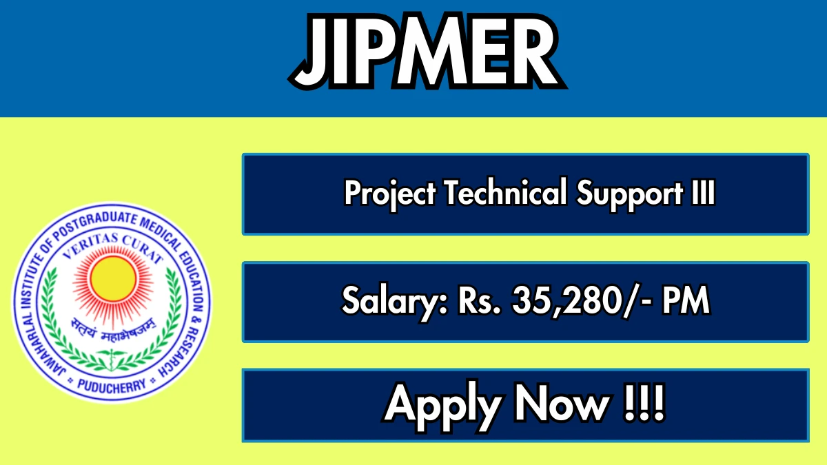 JIPMER Project Technical Support - III Recruitment 2026 Vacancy Details