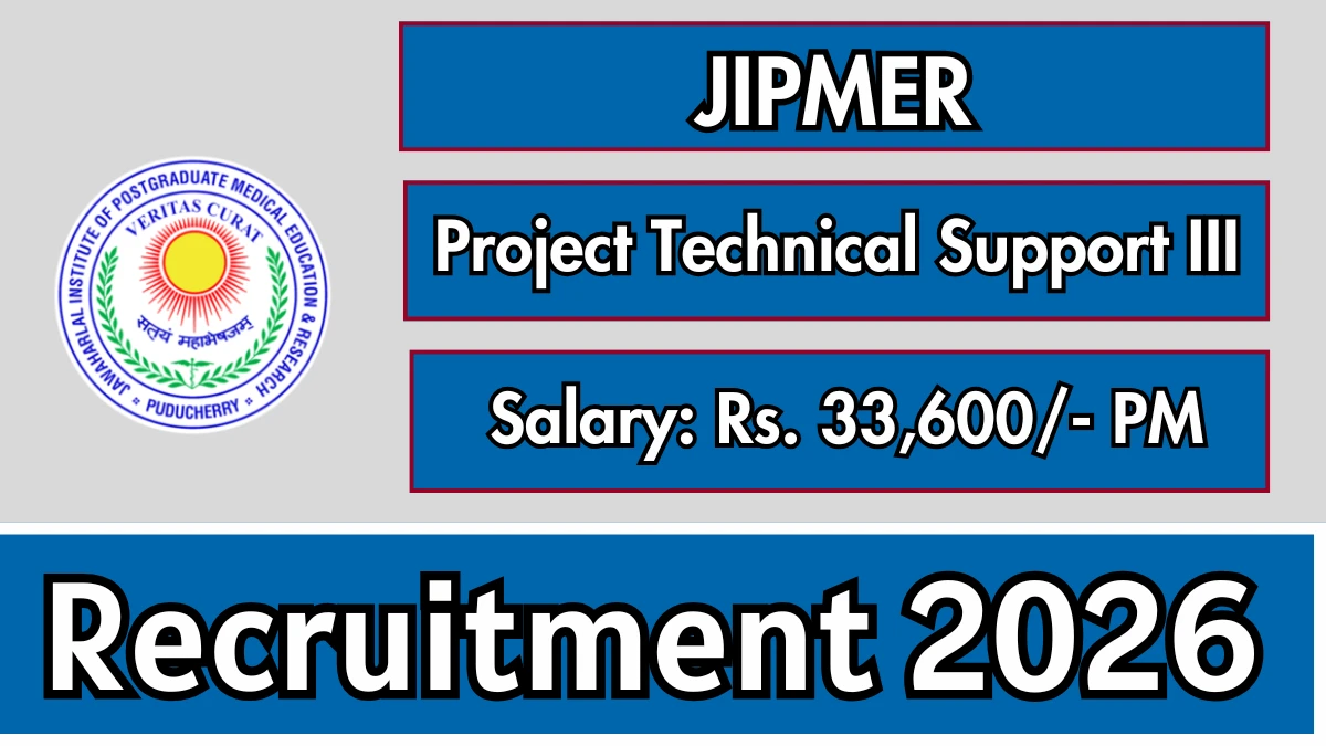 Jawaharlal Institute of Postgraduate Medical Education and Research (JIPMER) has released an official notification for the recruitment of 01 Project Technical Support III Posts. Interested and eligible candidates can apply Online through the official JIPMER website. The last date to submit the application form is 23-02-2026. In this article, you’ll find the JIPMER Project Technical Support III Posts recruitment details, including eligibility criteria, age limit, salary structure, selection process, application steps, and direct links to the official notification and Online application form.