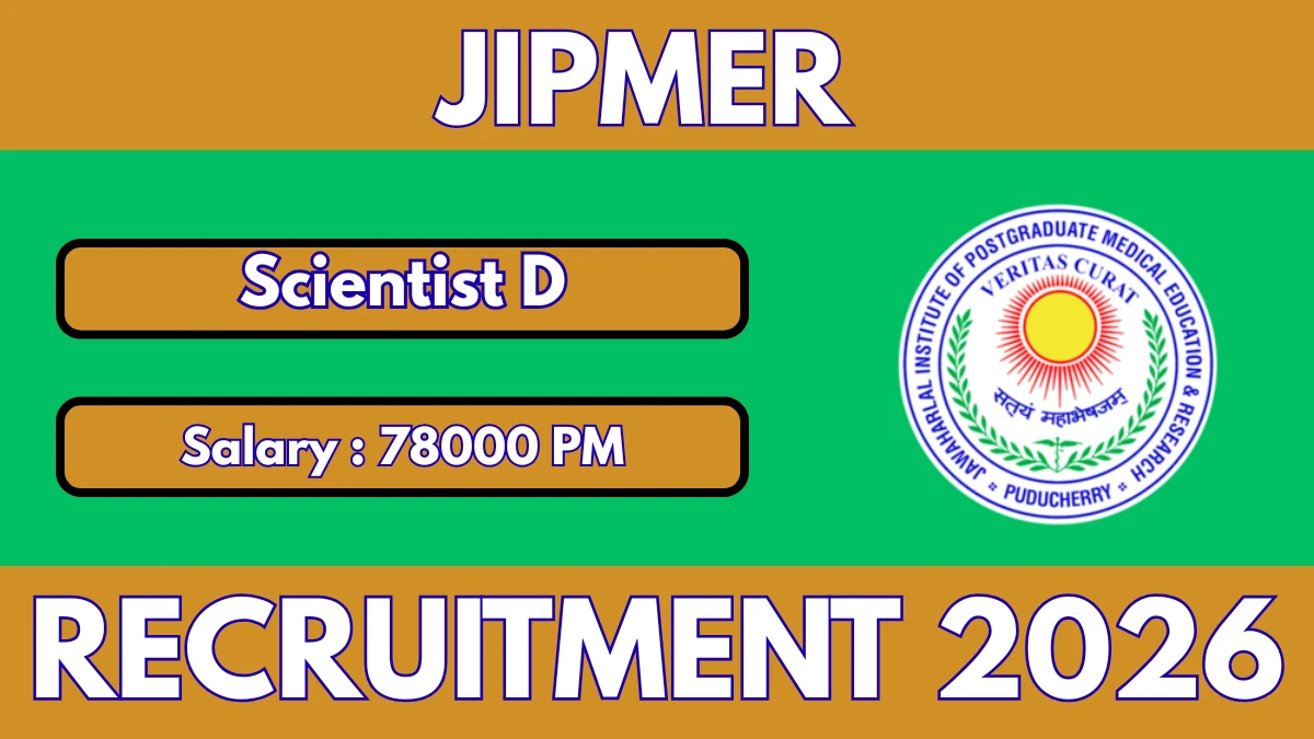 Jawaharlal Institute of Postgraduate Medical Education and Research (JIPMER) has released an official notification for the recruitment of 01 Scientist D Posts. Interested and eligible candidates can apply Online through the official JIPMER website. The last date to submit the application form is 07-02-2026. In this article, you’ll find the JIPMER Scientist D Posts recruitment details, including eligibility criteria, age limit, salary structure, selection process, application steps, and direct links to the official notification and Online application form.