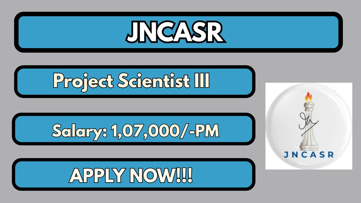 Jawaharlal Nehru Centre for Advanced Scientific Research (JNCASR) has released the JNCASR Project Scientist III Recruitment 2026 notification for 1 Project Scientist III post on a contractual basis.