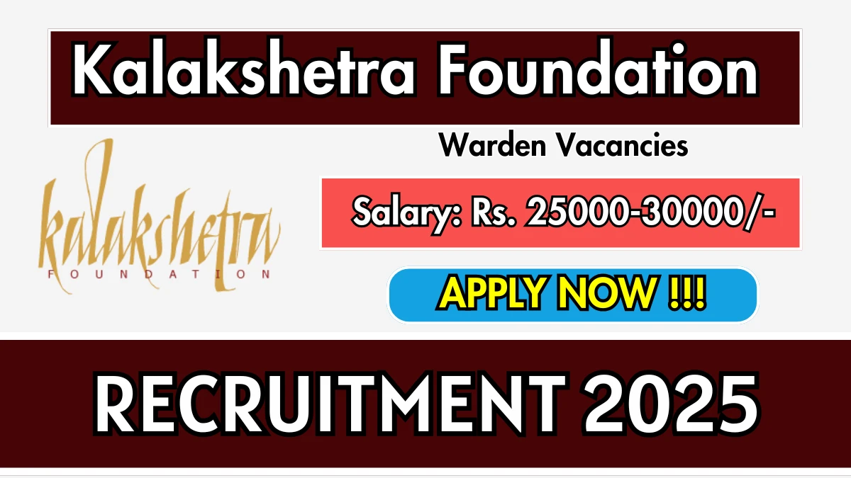 The Kalakshetra Foundation Recruitment 2025 for 01 posts of Warden. Candidates with 12TH Can Apply Offline. The Offline application closes on 07-10-2025. The candidate shall apply Offline through Kalakshetra Foundation website, kalakshetra.in.