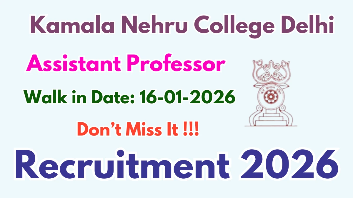 Kamala Nehru College Delhi Recruitment 2026 for 01 posts of Assistant Professor. Candidates Can attend the walkin. The Walk-in on 16-01-2026. For detailed information please visit Kamala Nehru College Delhi official website, du.ac.in.