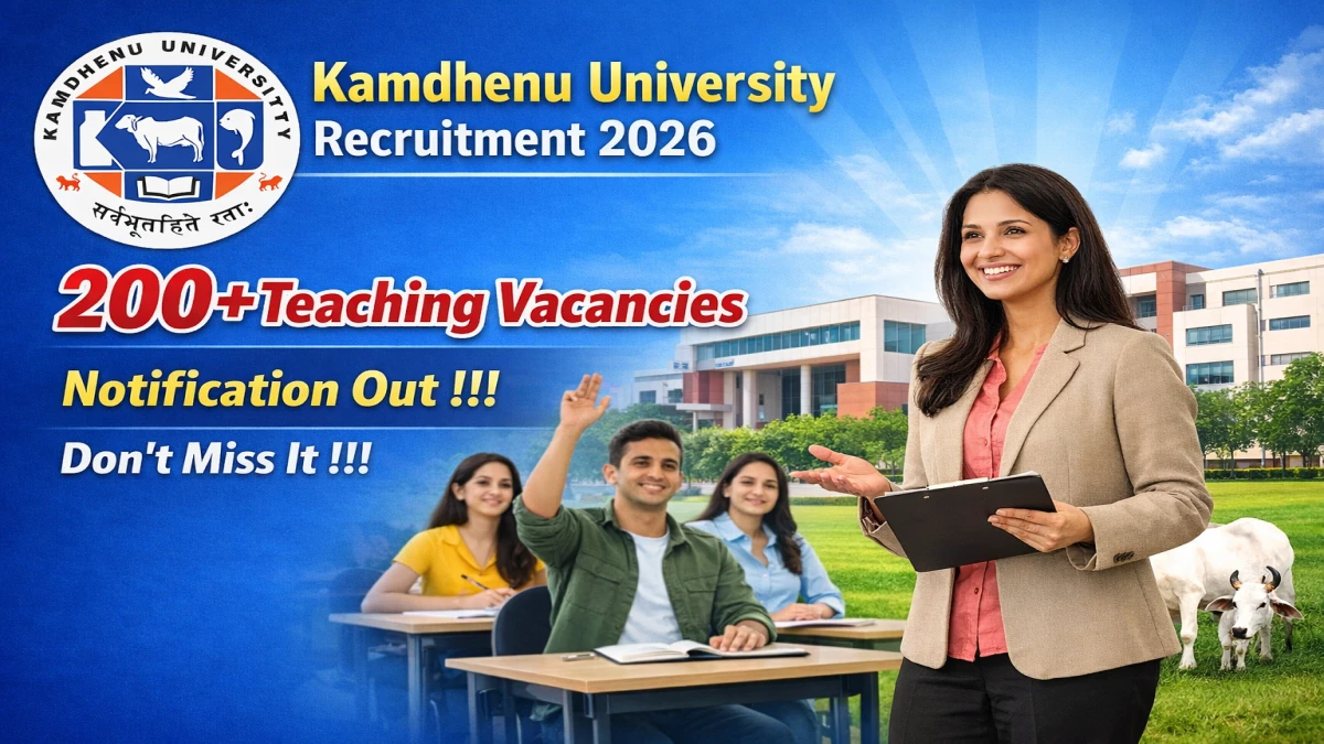 Kamdhenu University has released an official notification for the recruitment of 214 Teaching Posts. Interested and eligible candidates can apply Offline through the official Kamdhenu University website. The last date to submit the application form is 07-02-2026. In this article, you’ll find the Kamdhenu University Teaching Posts recruitment details, including eligibility criteria, age limit, salary structure, selection process, application steps, and direct links to the official notification and Offline application form.