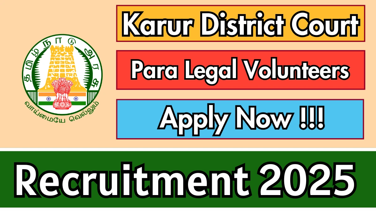 Karur District Court has released an official notification for the recruitment of Para Legal Volunteers Posts. Interested and eligible candidates can apply Offline through the official Karur District Court website. The last date to submit the application form is 25-10-2025. In this article, you’ll find the Karur District Court Para Legal Volunteers Posts recruitment details, including eligibility criteria, age limit, salary structure, selection process, application steps, and direct links to the official notification and Offline application form.