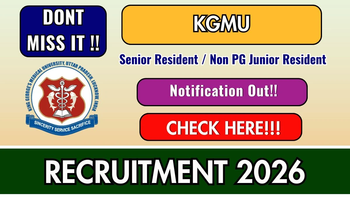 King George's Medical University (KGMU) Senior Resident / Non PG Junior Resident Notification 2026 has been released on 02 March 2026 on the official website https://kgmuindia.edu/ . A total of 9 vacancies have been announced through the KGMU Recruitment 2026.