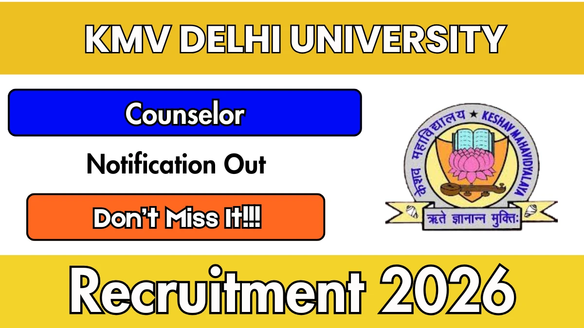 Keshav Mahavidyalaya (KMV Delhi University) Recruitment 2026 for 02 posts of Counselor. Candidates with M.A Can attend the walkin. The Walk-in starts on 23-02-2026. For detailed information please visit KMV Delhi University official website, keshav.great-site.net.