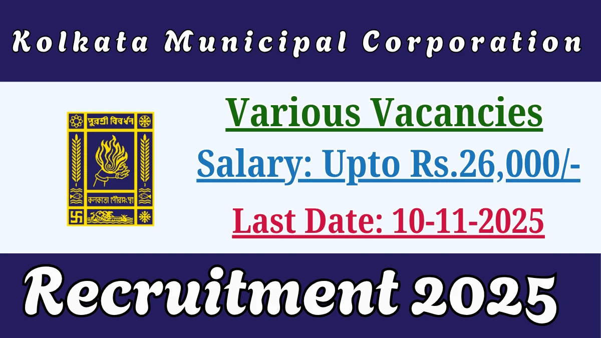 Kolkata Municipal Corporation has released an official notification for the recruitment of 14 Senior Treatment Supervisor, Laboratory Technician and More Posts. Interested and eligible candidates can apply Offline through the official Kolkata Municipal Corporation website. The last date to submit the application form is 10-11-2025. In this article, you’ll find the Kolkata Municipal Corporation Senior Treatment Supervisor, Laboratory Technician and More Posts recruitment details, including eligibility criteria, age limit, salary structure, selection process, application steps, and direct links to the official notification and Offline application form.
