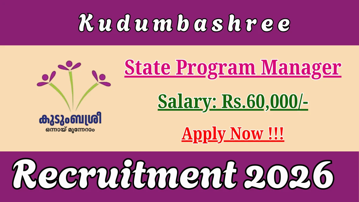 Kudumbashree has released an official notification for the recruitment of 01 State Program Manager Posts. Interested and eligible candidates can apply Online through the official Kudumbashree website. The last date to submit the application form is 05-02-2026. In this article, you’ll find the Kudumbashree State Program Manager Posts recruitment details, including eligibility criteria, age limit, salary structure, selection process, application steps, and direct links to the official notification and Online application form.