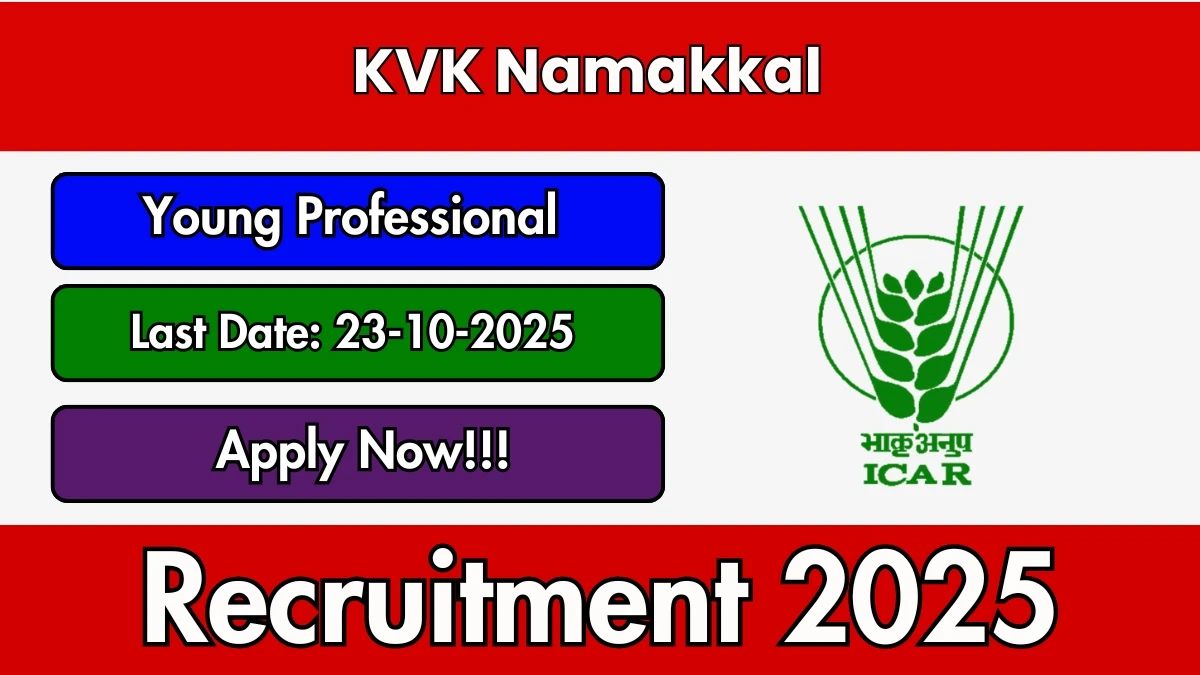 Krishi Vigyan Kendra Namakkal (KVK Namakkal) has released an official notification for the recruitment of 02 Young Professional Posts. Interested and eligible candidates can apply Offline through the official KVK Namakkal website. The last date to submit the application form is 23-10-2025. In this article, you’ll find the KVK Namakkal Young Professional Posts recruitment details, including eligibility criteria, age limit, salary structure, selection process, application steps, and direct links to the official notification and Offline application form.