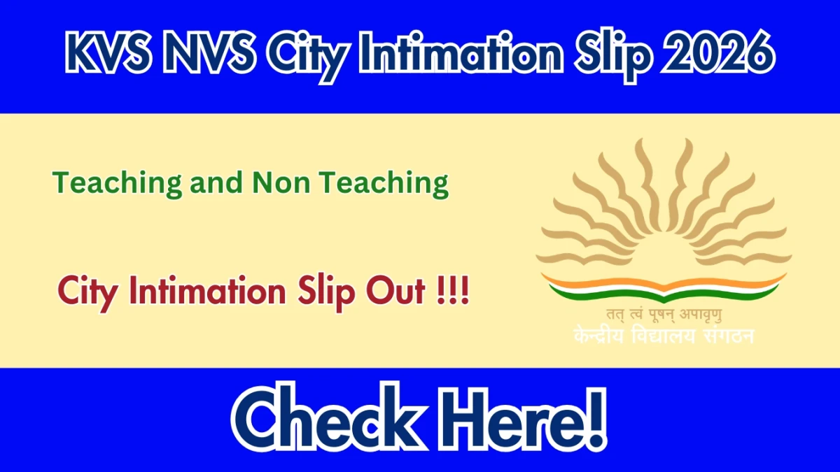 KVS NVS Tier 2 City Intimation Slip 2026 for the joint recruitment (Advertisement No. 01/2025) to various teaching and non-teaching posts in Kendriya Vidyalaya Sangathan (KVS) and Navodaya Vidyalaya Samiti (NVS) has been released on March 9, 2026, by the Central Board of Secondary Education (CBSE), which conducts the exam on behalf of KVS and NVS. This follows the Tier-1 result and shortlisting announcement on February 28, 2026.