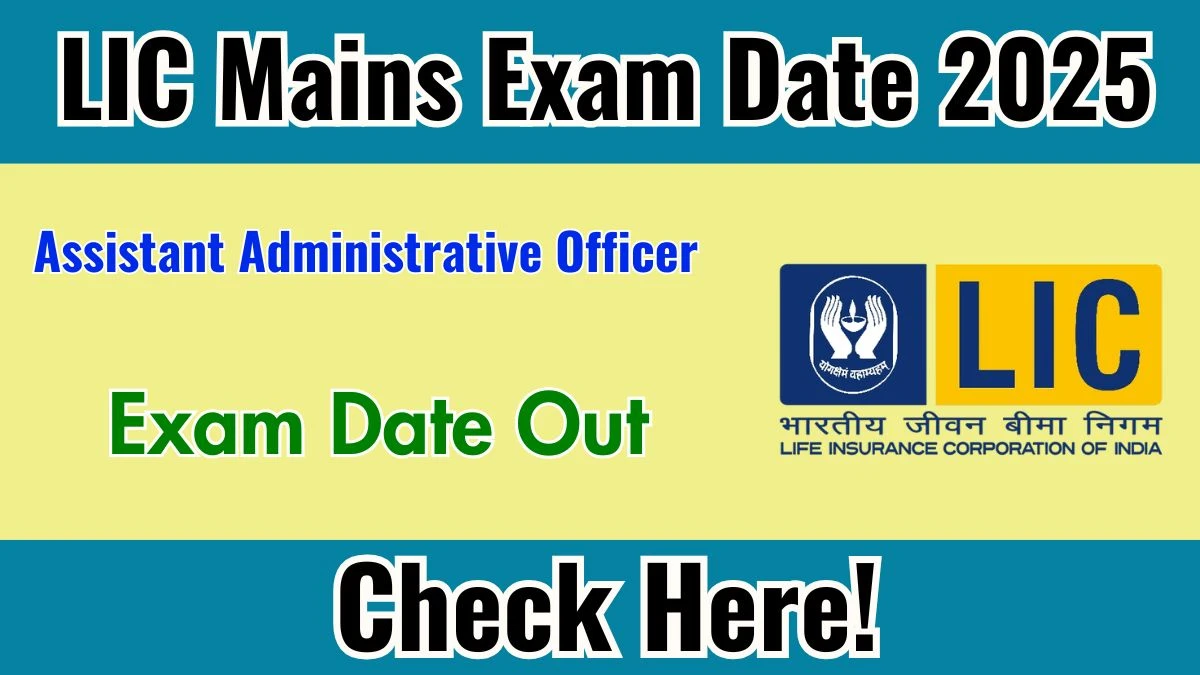 The Life Insurance Corporation of India has announced the Mains Exam Date 2025 for the post of AAO. Candidates can check the LIC Exam Date 2025 notification on the official website - licindia.in. The examination is scheduled for 08 November 2025. Further details about the LIC Exam Date 2025 can be obtained from our website. Download the LIC Exam Date 2025 from the provided website.