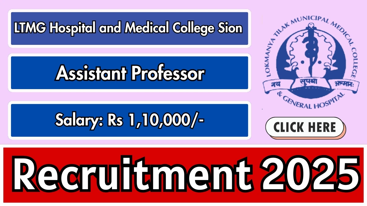 The LTMG Hospital and Medical College Sion Recruitment 2025 for 01 posts of Assistant Professor. Candidates with DNB, DM Can Apply Offline. The Offline application opens on 24-09-2025, and closes on 07-10-2025. The candidate shall apply Offline through LTMG Hospital and Medical College Sion website, mcgm.gov.in.
