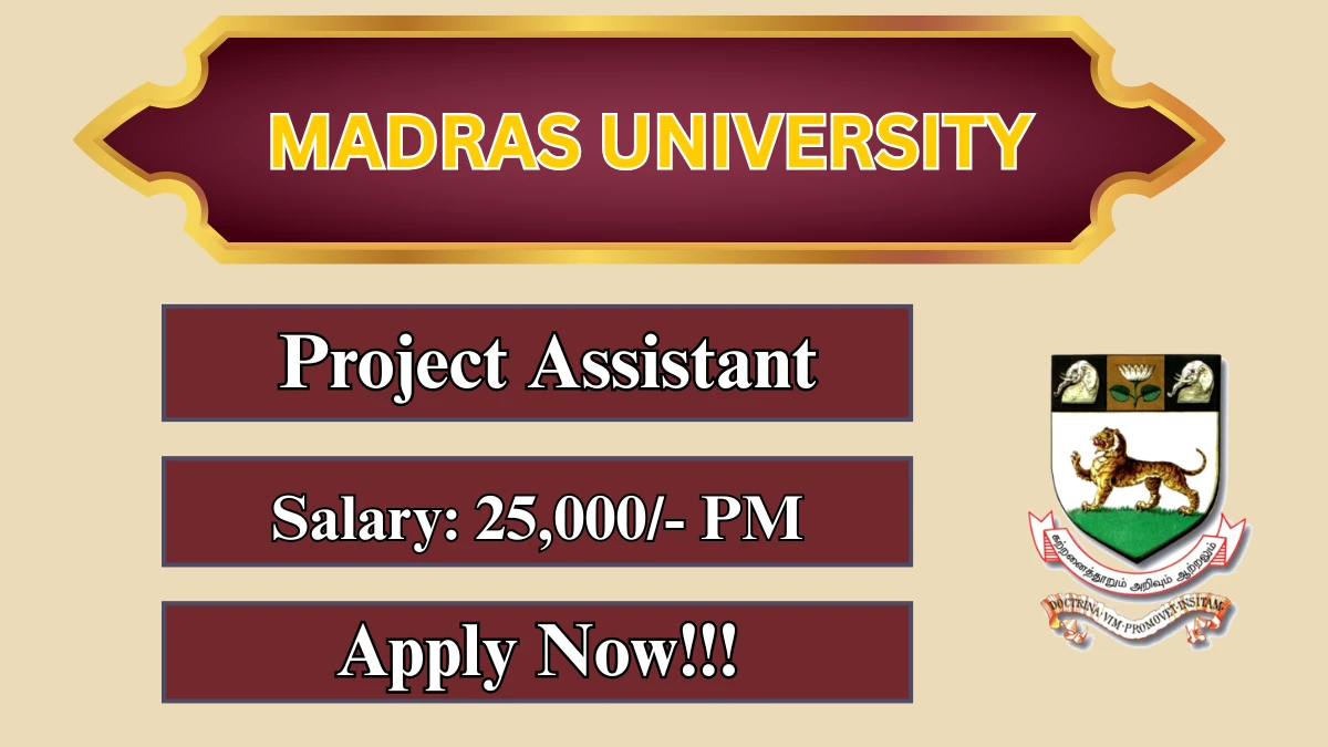 University of Madras (Madras University) Project Assistant Notification 2026 has been released on the official website https://www.unom.ac.in . A total of 1 vacancy has been announced through the Madras University Project Assistant Recruitment 2026.