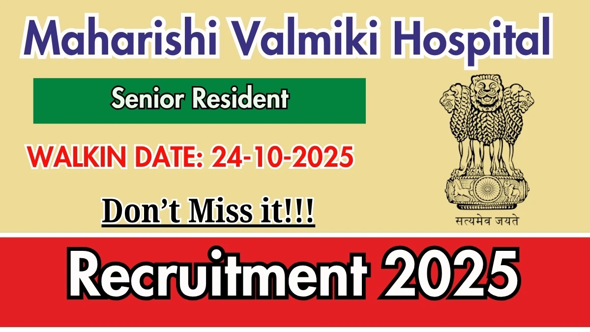 Maharishi Valmiki Hospital Recruitment 2025 for 09 posts of Senior Resident. Candidates with Diploma, DNB, MS/MD Can attend the walkin. The Walk-in on 24-10-2025. For detailed information please visit Maharishi Valmiki Hospital official website, mvh.delhi.gov.in.