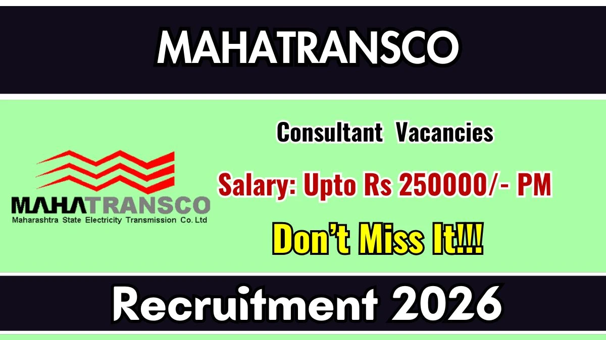 Maharashtra State Electricity Transmission Company (MAHATRANSCO) has released an official notification for the recruitment of Consultant Posts. Interested and eligible candidates can apply Online through the official MAHATRANSCO website. The last date to submit the application form is 12-02-2026. In this article, you’ll find the MAHATRANSCO Consultant Posts recruitment details, including eligibility criteria, age limit, salary structure, selection process, application steps, and direct links to the official notification and Online application form.
