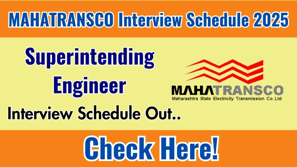 MAHATRANSCO Superintending Engineer Interview Schedule 2025 is officially notified.