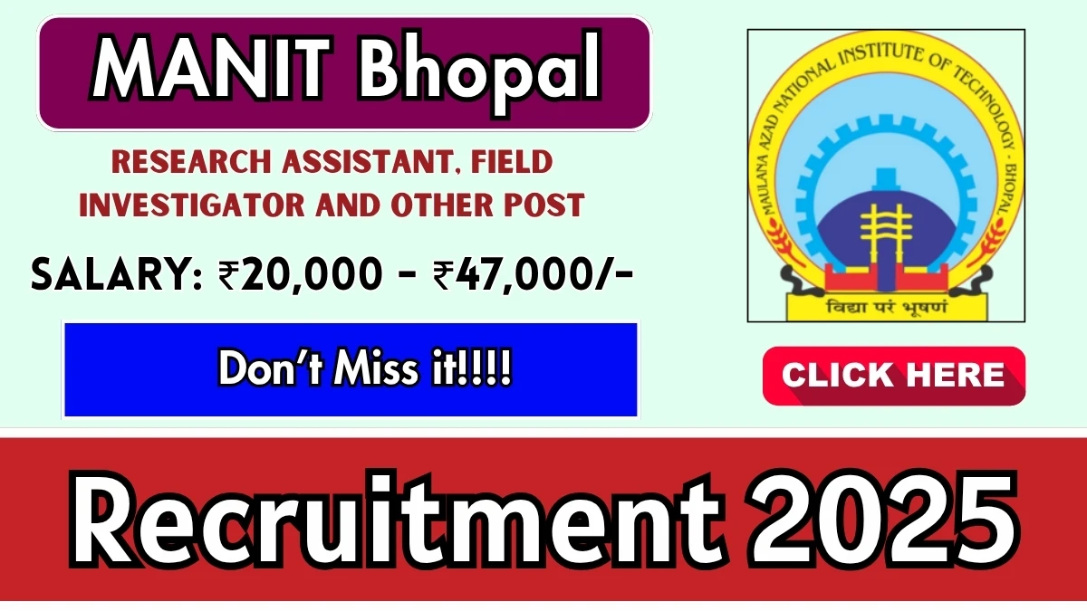 Maulana Azad National Institute of Technology (MANIT Bhopal) has released an official notification for the recruitment of 14 Research Assistant, Field Investigator and Other Posts. Interested and eligible candidates can apply Offline through the official MANIT Bhopal website. The last date to submit the application form is 24-10-2025. In this article, you’ll find the MANIT Bhopal Research Assistant, Field Investigator and Other Posts recruitment details, including eligibility criteria, age limit, salary structure, selection process, application steps, and direct links to the official notification and Offline application form.