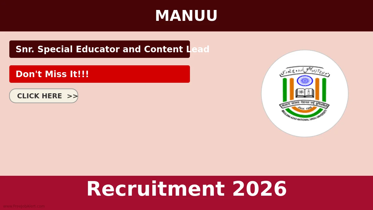 Maulana Azad National Urdu University (MANUU) has released an official notification for the recruitment of 1 Snr. Special Educator and Content Lead Posts. Interested and eligible candidates can apply by sending their application via Email. The last date to send the application email is 15-04-2026.