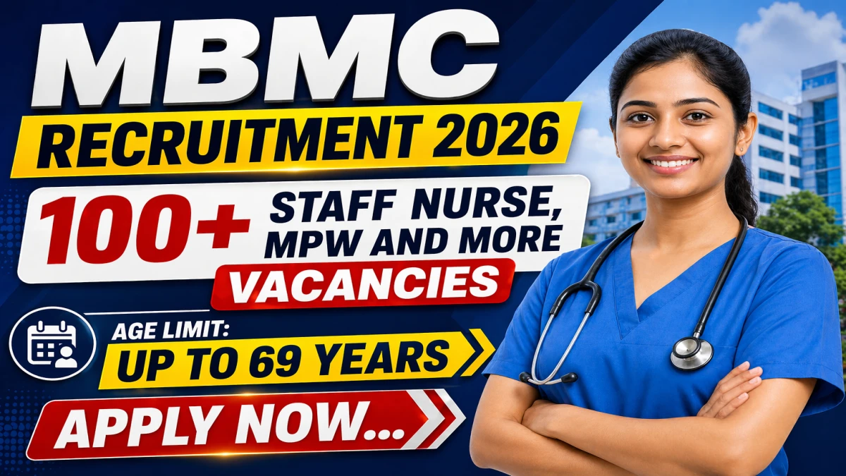 The latest Mira Bhayandar Municipal Corporation (MBMC) Recruitment 2026 has been announced for medical, paramedical, and support posts under NHM, NTEP, 15th Finance Commission, and HBT Aapla Dawakhana! Published on 16 April 2026 at mbmc.gov.in, this new recruitment drive offers 113 openings for eligible candidates. Applicants within the 18 years to 69 years (post-wise age limit applicable) age group and possessing MBBS, BAMS, MD, B.Sc Nursing, GNM, ANM, D.Pharma, B.Sc + DMLT, 12th Science with paramedical training, and other relevant qualifications as per post can apply through the mandatory Google Form and offline application process from 17 April 2026 to 04 May 2026 (5:00 PM). Find all details about the MBMC NHM/NTEP/15th FC/HBT Recruitment 2026, including eligibility, application process, and notification PDF here.
