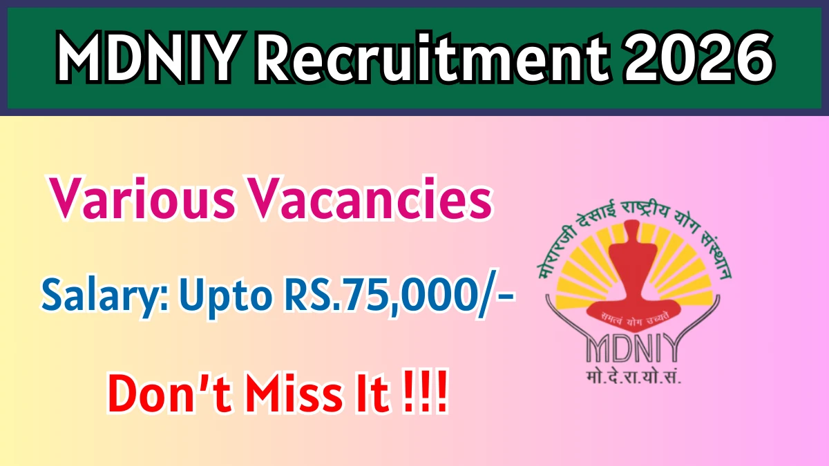 Morarji Desai National Institute of Yoga (MDNIY) Recruitment 2026 for 21 posts of JRF, Senior Consultant And More. Candidates with Diploma, Any Post Graduate Can attend the walkin. The Walk-in starts from 28-01-2026, and ends on 30-01-2026. For detailed information please visit MDNIY official website, https://ccrhindia.ayush.gov.in.